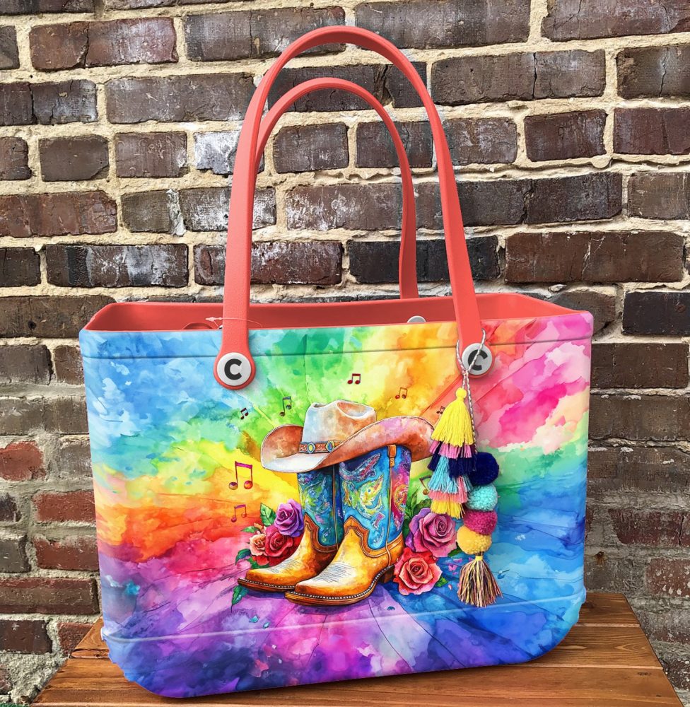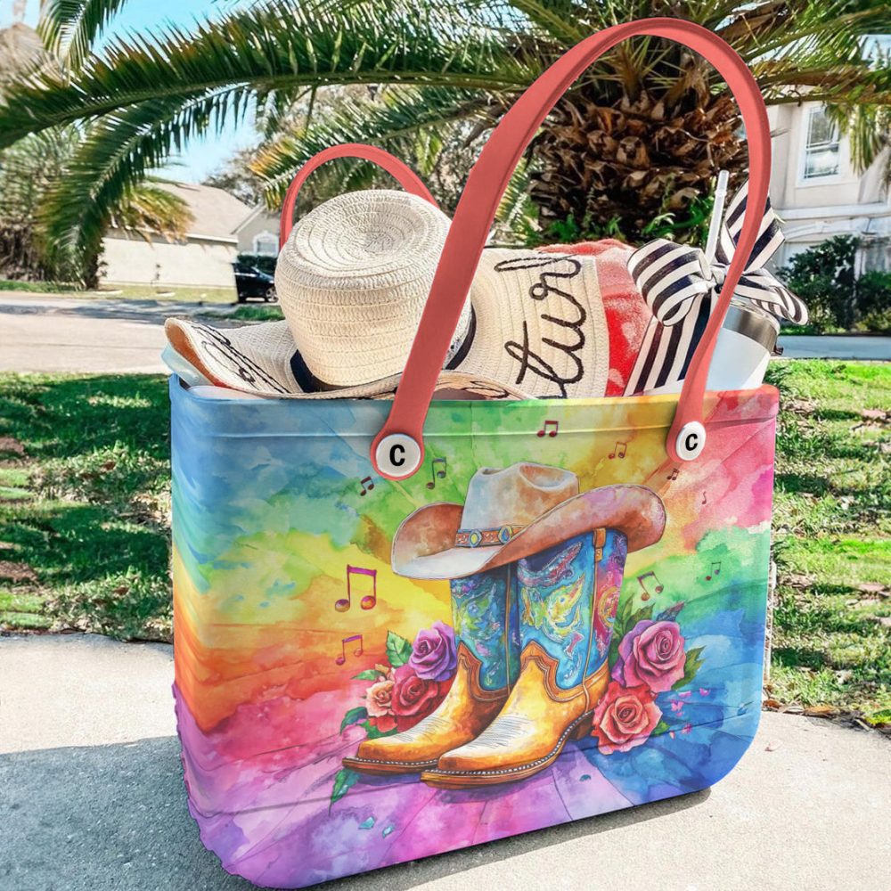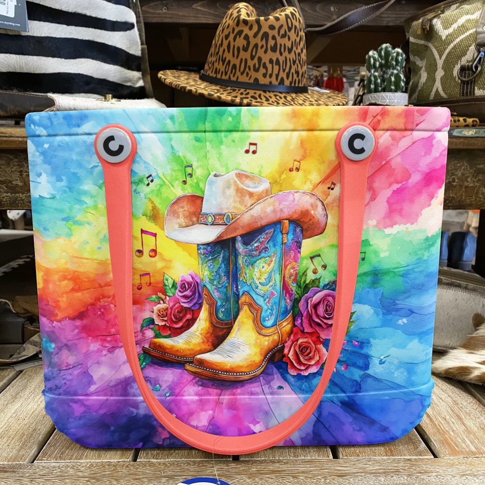 Be the first to review “Vibrant Western Tote Bag – Colorful Cowboy Boots & Hat Design, Perfect For Music Festival Style!”