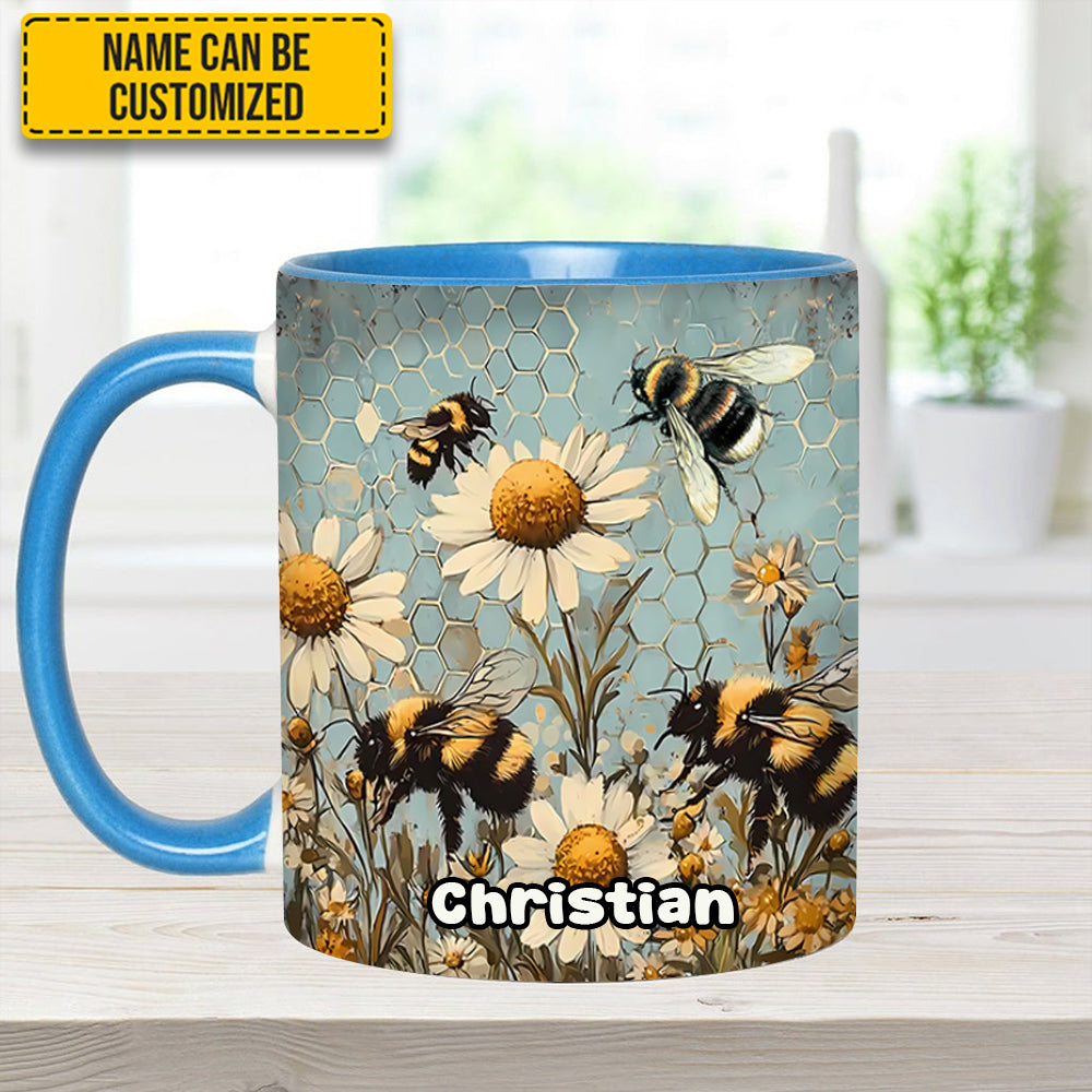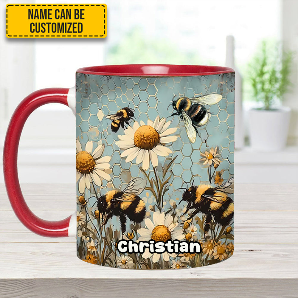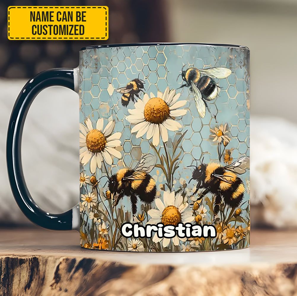 Vintage Garden Bee Floral Daisy – Personalized Bee Accent Mug