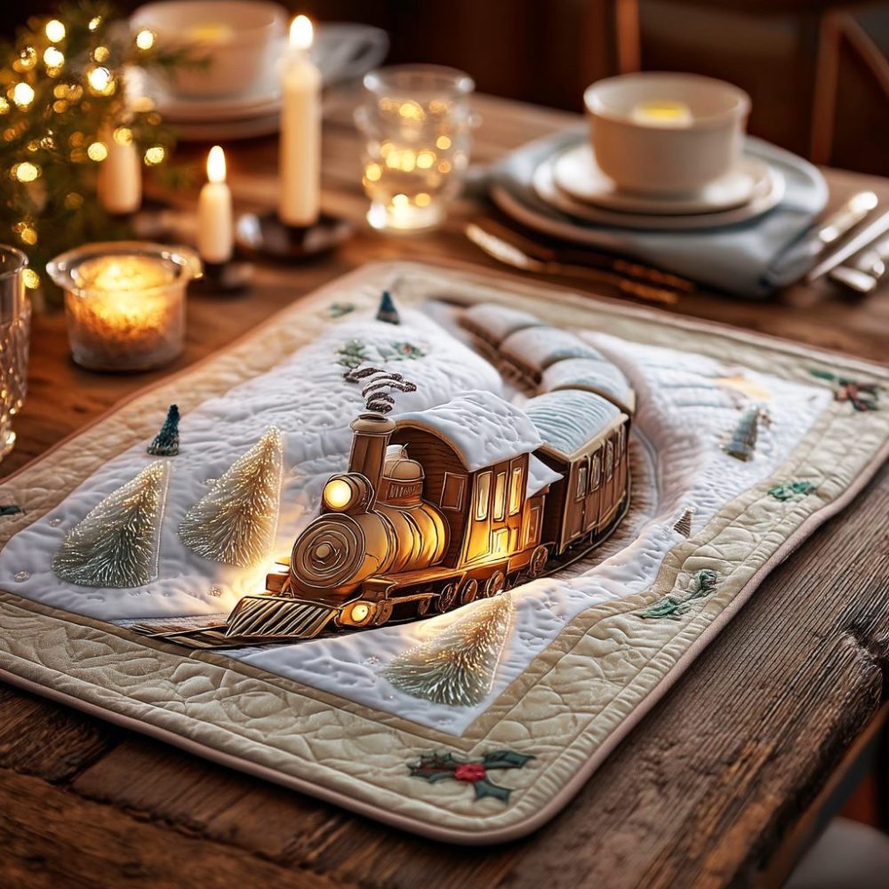 Vintage Steam Train Christmas Quilted Placemat — Festive Holiday Table Decor For Family Dinners & Seasonal Entertaining, Retro Toy Motif