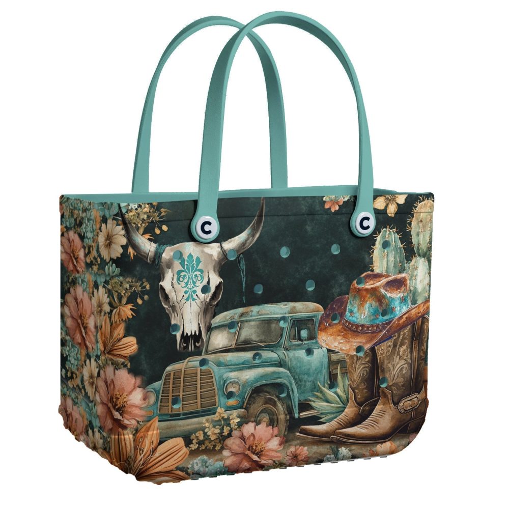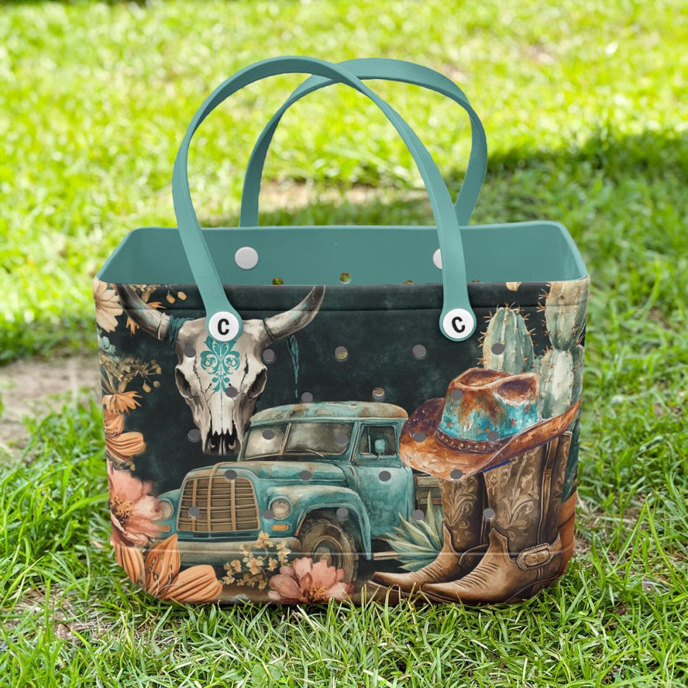 Be the first to review “Vintage Western Tote Bag – Floral, Skull & Truck Design – Perfect For Stylish, Everyday Use”