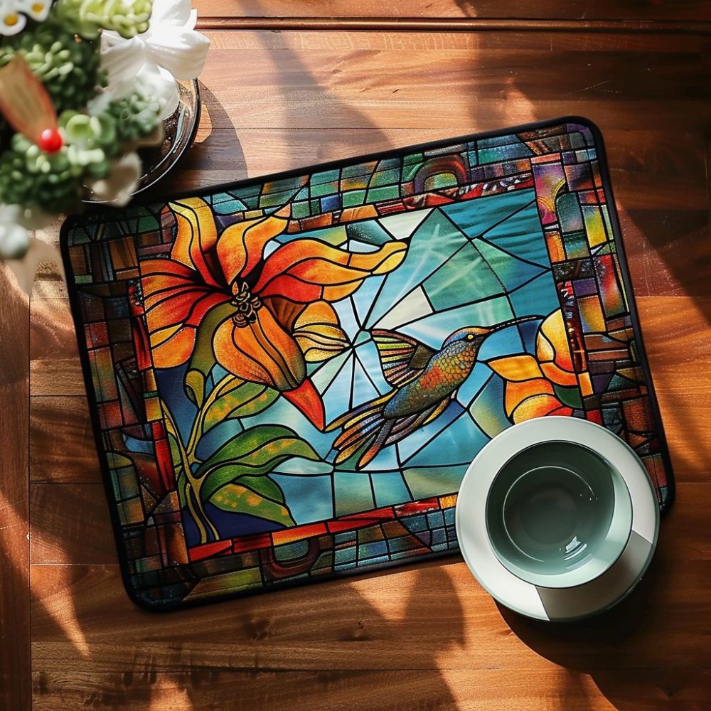 Vivid Stained-Glass Hummingbird Quilted Placemat — Artistic Table Accent For Dining & Garden Parties, Durable Decorative Mat