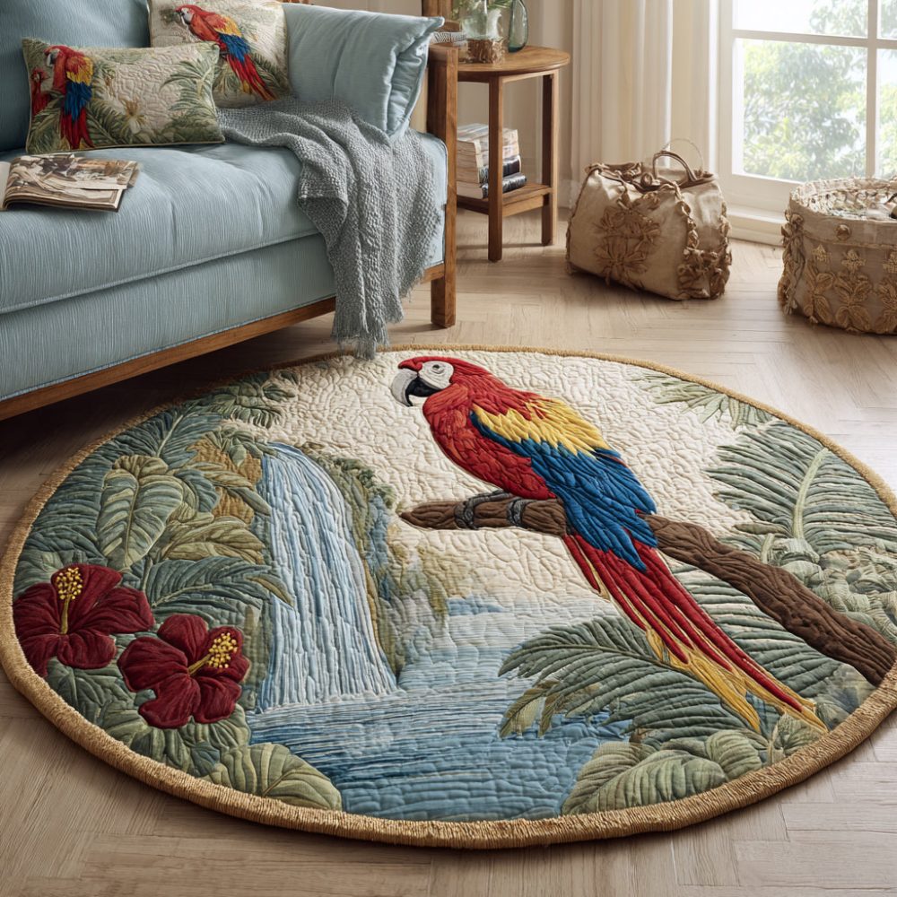 Waterfall Parrot Quilted Round Mat