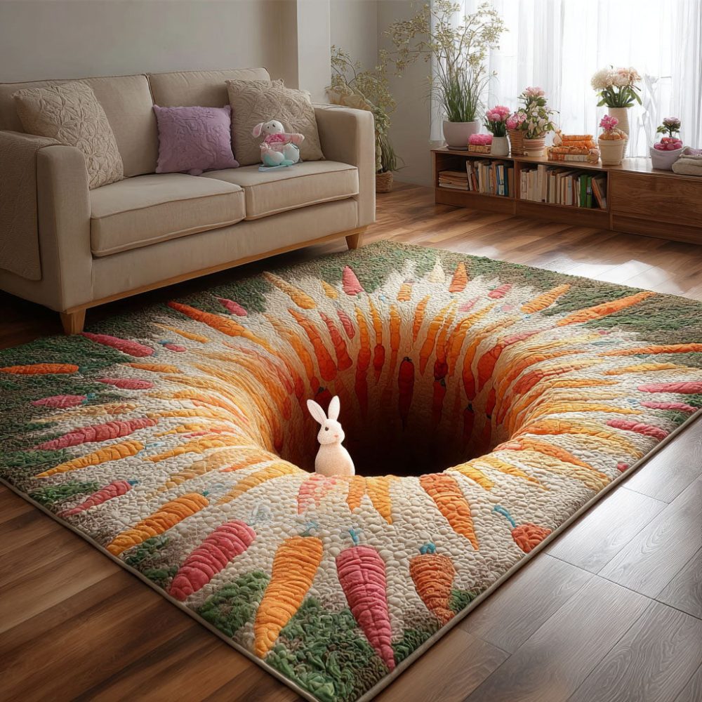 Whimsical Carrot Garden Kids Area Rug — Playroom Nursery Floral Veggie Design, Soft Non-Slip Low-Pile Rug For Children’S Rooms