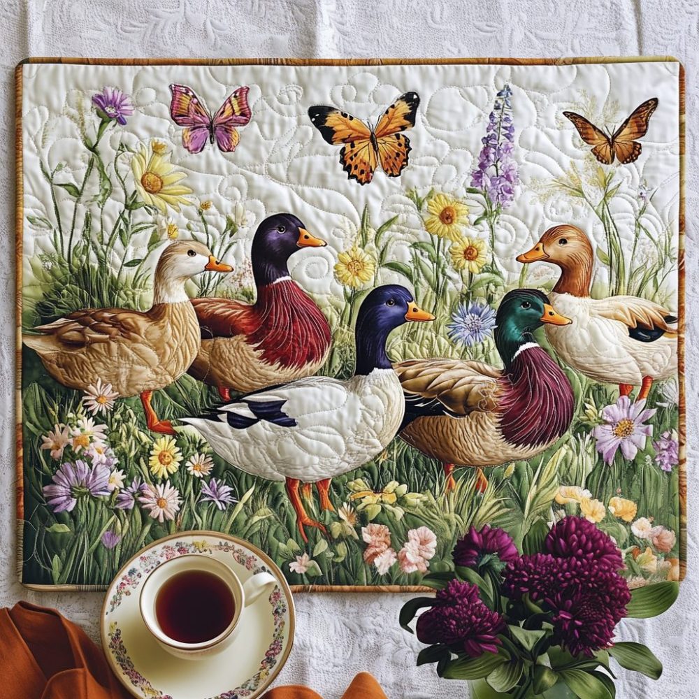 duck placemat, floral placemat, quilted placemat, garden motif, whimsical table decor, dining placemat, giftable table accent