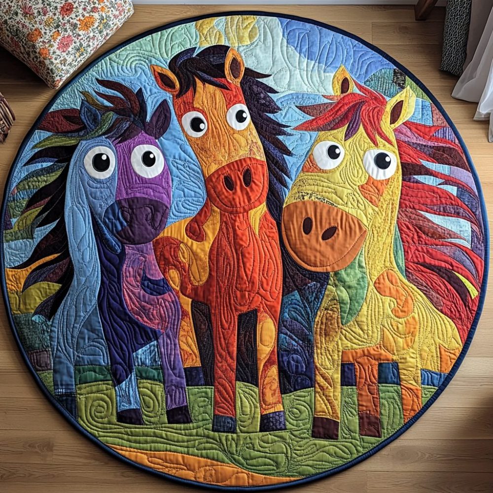 Whimsical Horse Quilted Round Mat