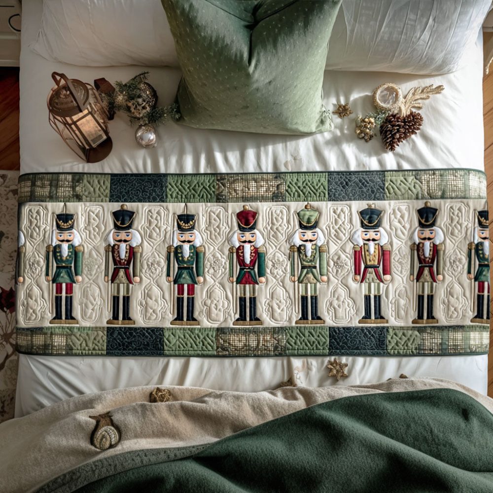 Whimsical Nutcracker Parade Quilted Bed Runner – Festive Holiday Bed Scarf For Queen & King Beds, Premium Cotton