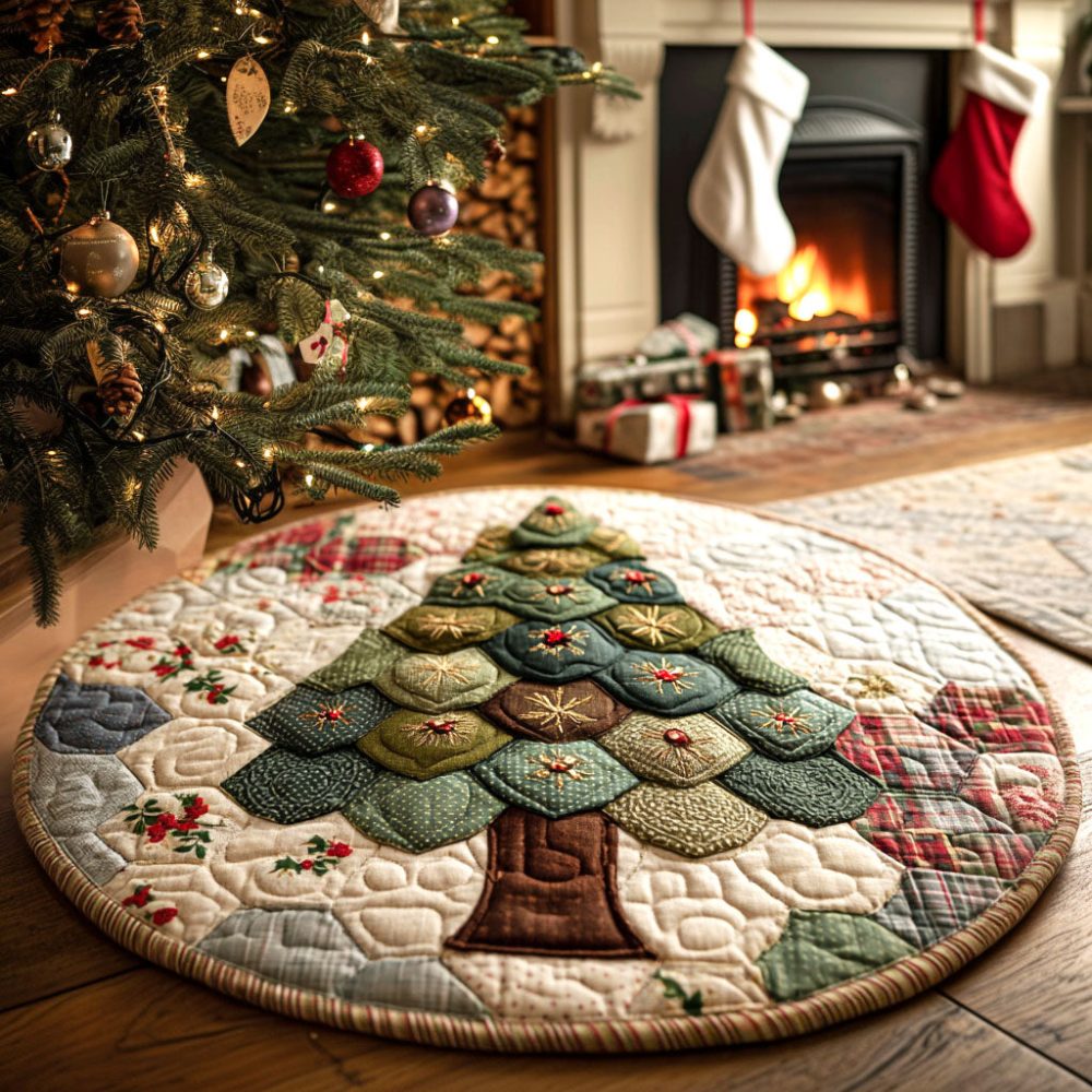 Whimsical Pine Quilted Round Mat