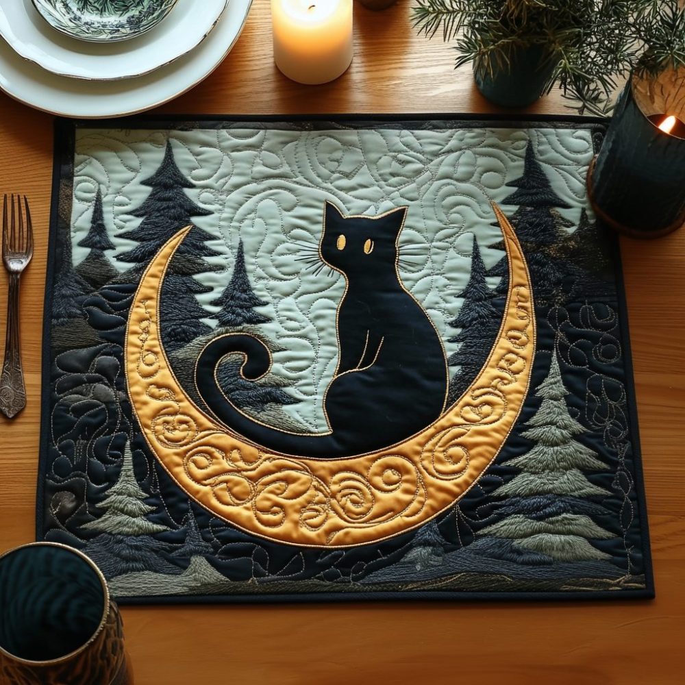 Infuse nighttime charm into meals with the Whisker Moon quilted placemat, featuring a celestial cat motif and cushioned quilting. The protective padding guards surfaces from heat and spills while remaining machine washable for convenient upkeep. Ideal for cozy kitchens, themed gatherings, or thoughtful gifts for cat enthusiasts.