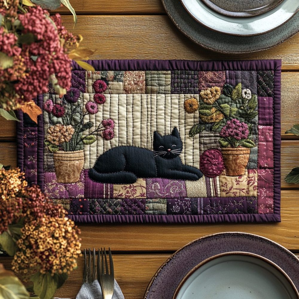 Whisker Window Quilted Placemat – Charming Cat Silhouette Design, Easy-Care Quilted Mat, Durable Cotton, Perfect For Pet Lovers
