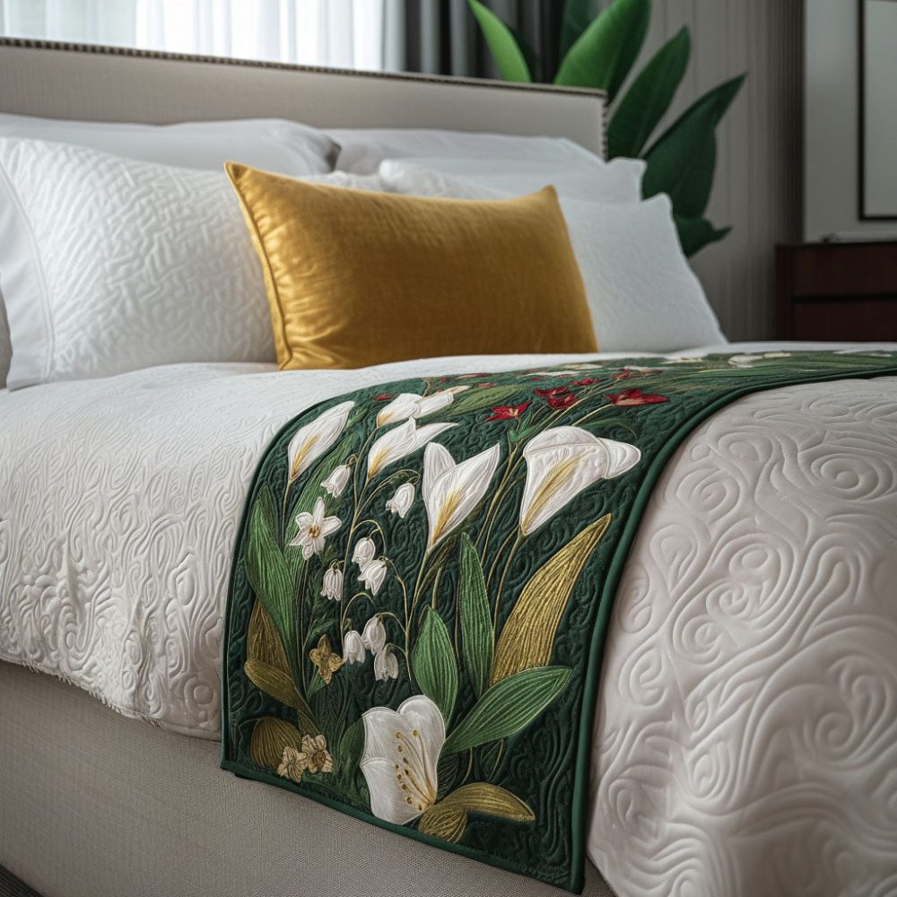 White Blossom Promise Quilted Bed Runner — Pure White Floral Bed Scarf For Timeless, Refined Bedroom Layers, Soft & Durable