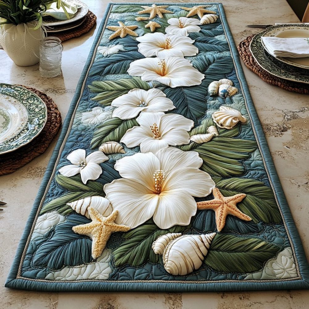 White Serenity Quilted Table Runner