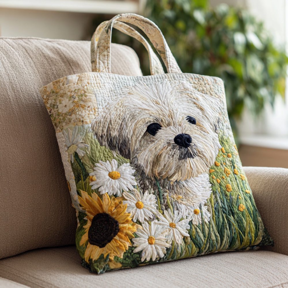 Whitewash Shih Tzu Quilted Tote Bag