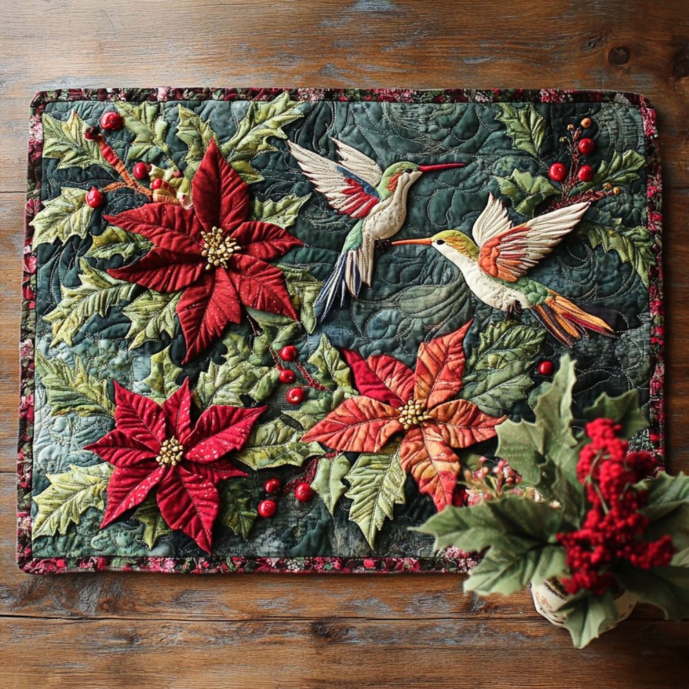 Wings of Joy placemat, bird placemat, quilted table mat, cotton blend placemat, machine washable placemat, floral table decor, elegant dining accessories
