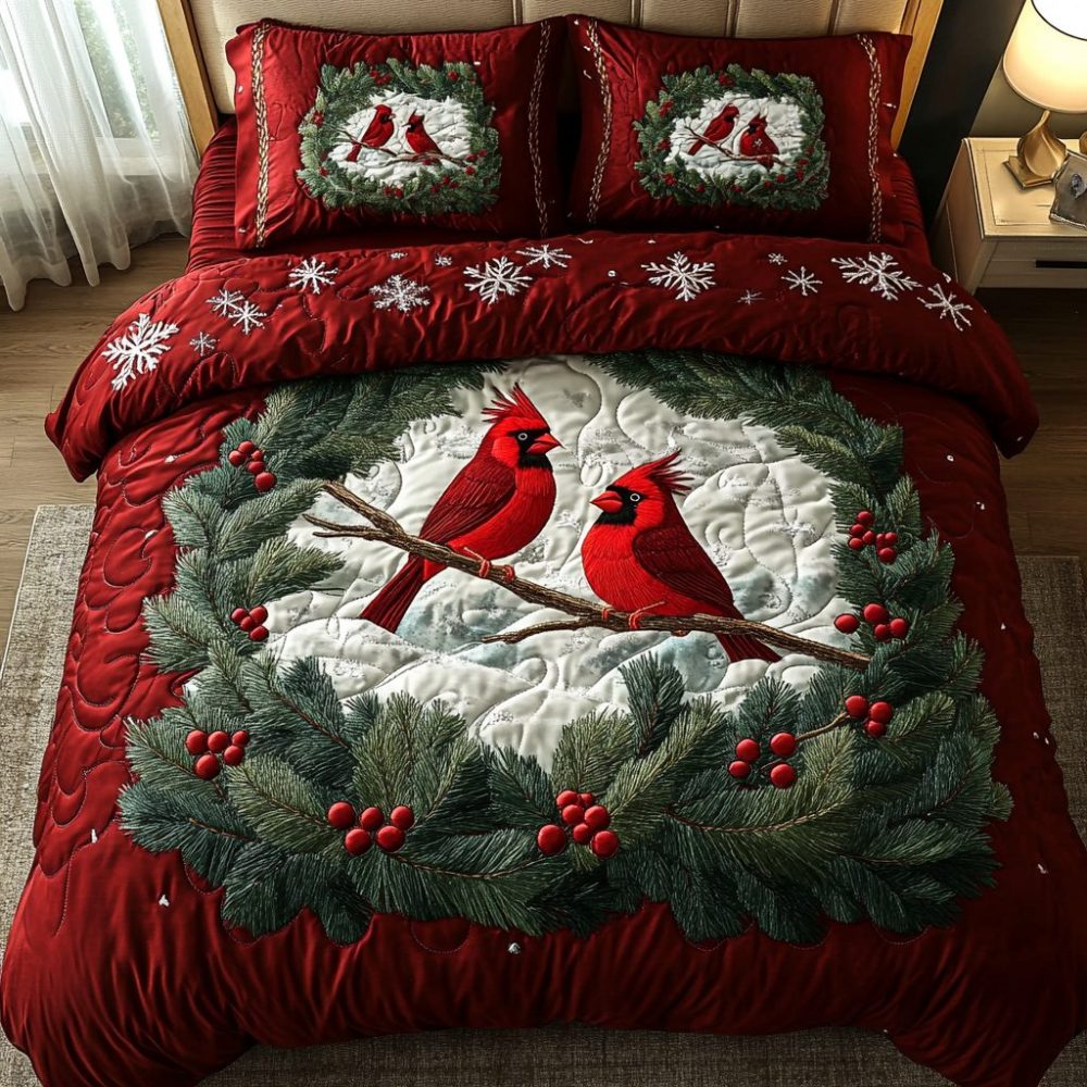 Winter Cardinal Charm 3-Piece Quilted Bedding Set