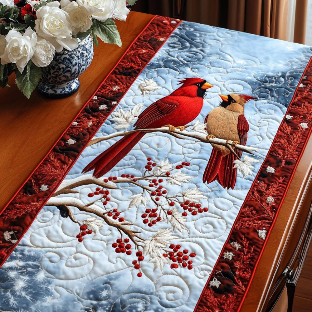Winter Cardinals Quilted Table Runner