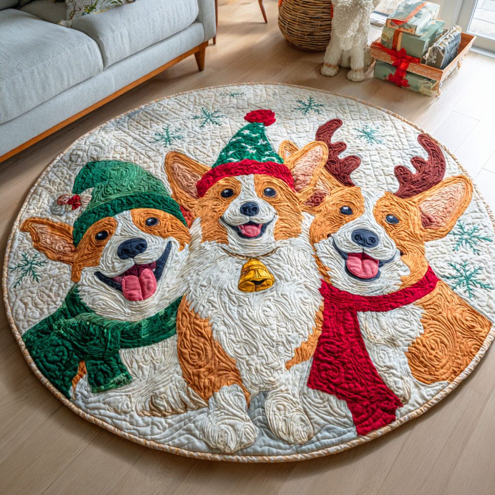 Winter Corgi Quilted Round Mat