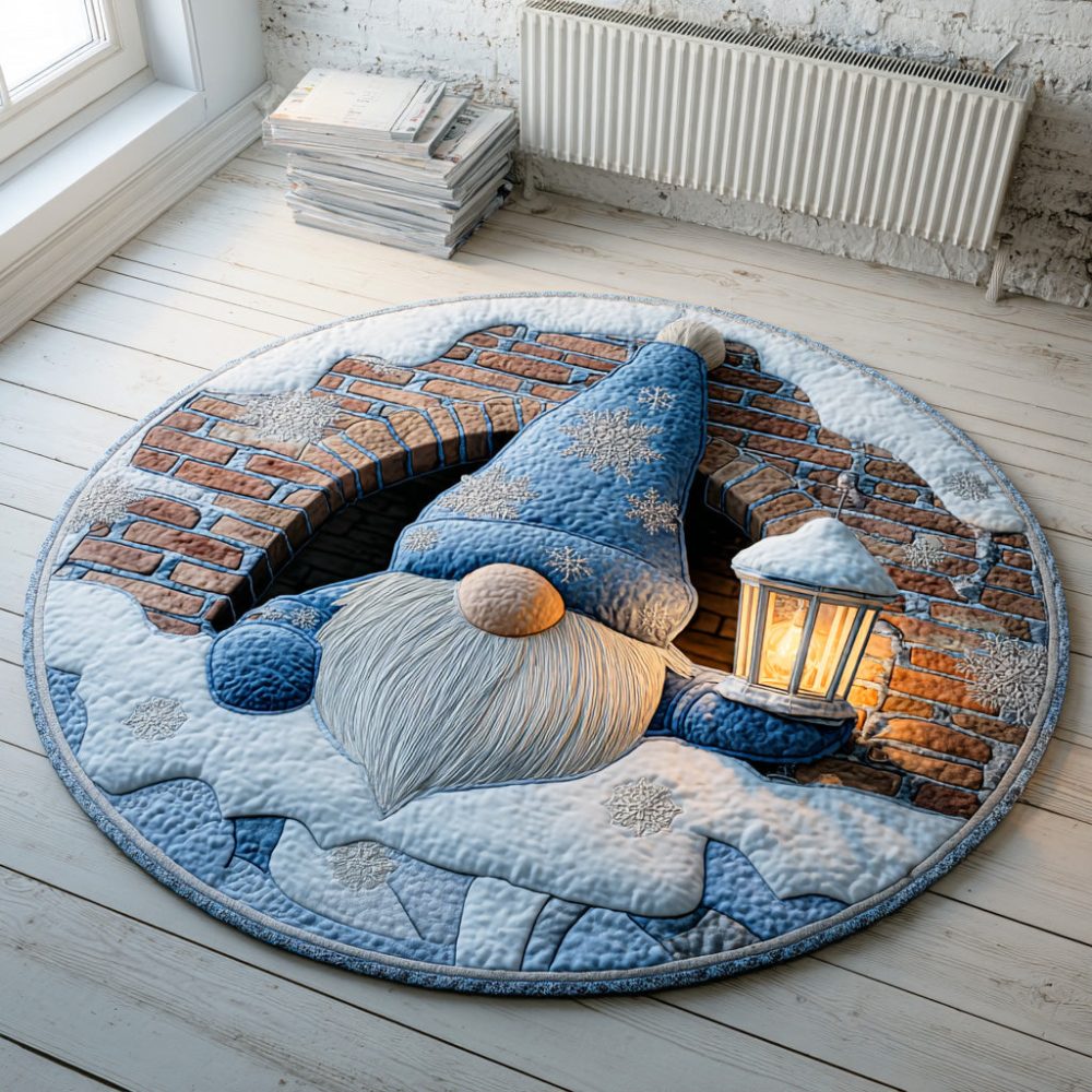 Winter Gnome Path Quilted Round Mat