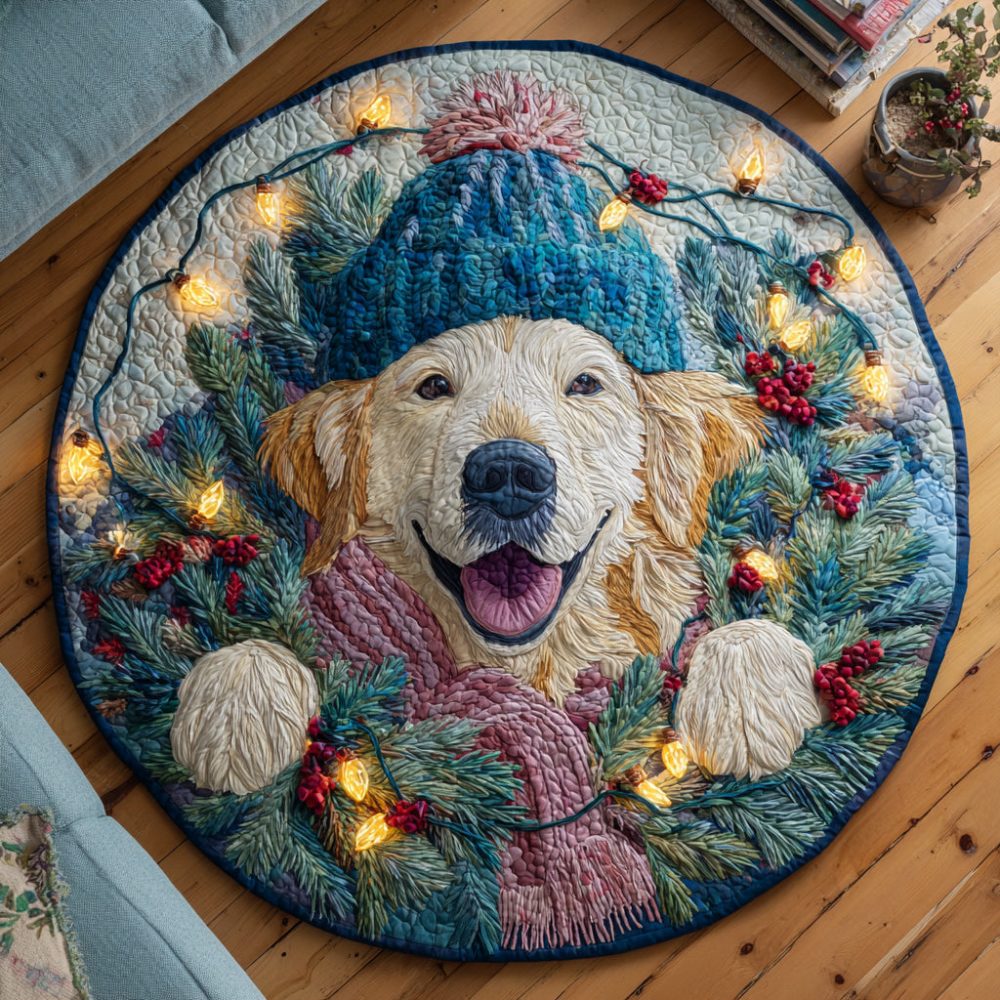 Winter Golden Retriever Quilted Round Mat