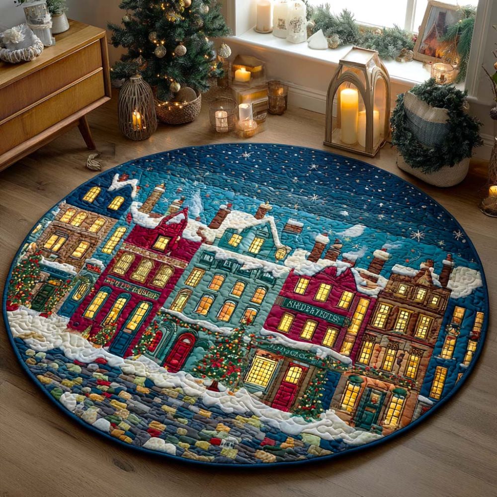 Winter Town Glow Quilted Round Mat