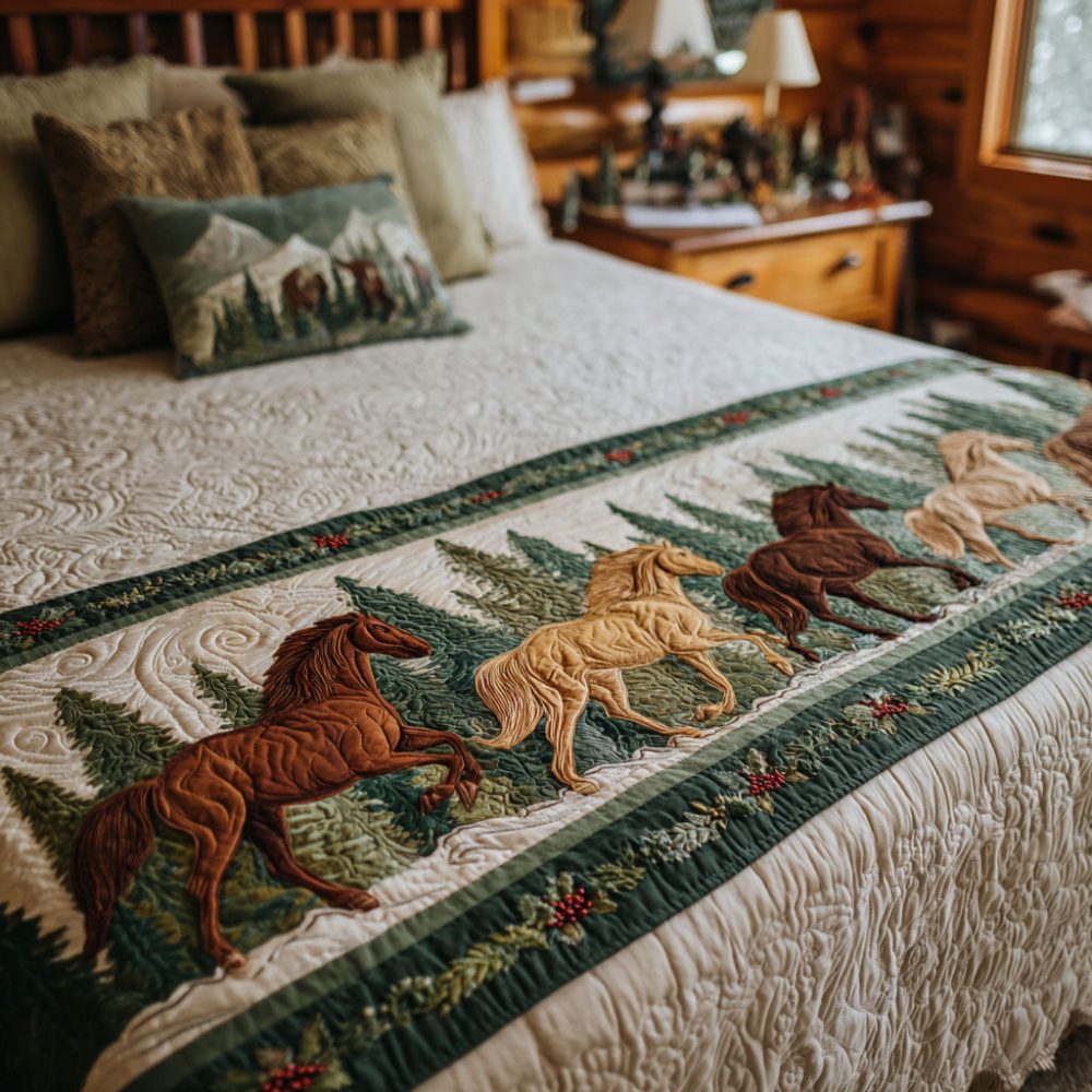 Winter Trot Quilted Christmas Bed Runner — Cozy Holiday Bed Scarf, Reversible Quilted Bedding Accent For Classic Seasonal Decor