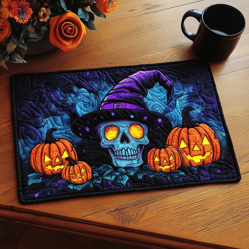 witch lair placemat, Halloween placemat, enchanted placemat, quilted table mat, machine washable placemat, heat resistant, spooky table decor