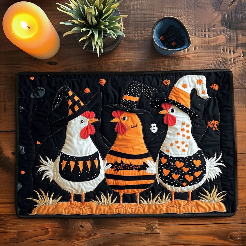 witchy chickens placemat, Halloween placemat, whimsical placemat, quilted cotton placemat, machine washable, farmhouse Halloween decor, table accent
