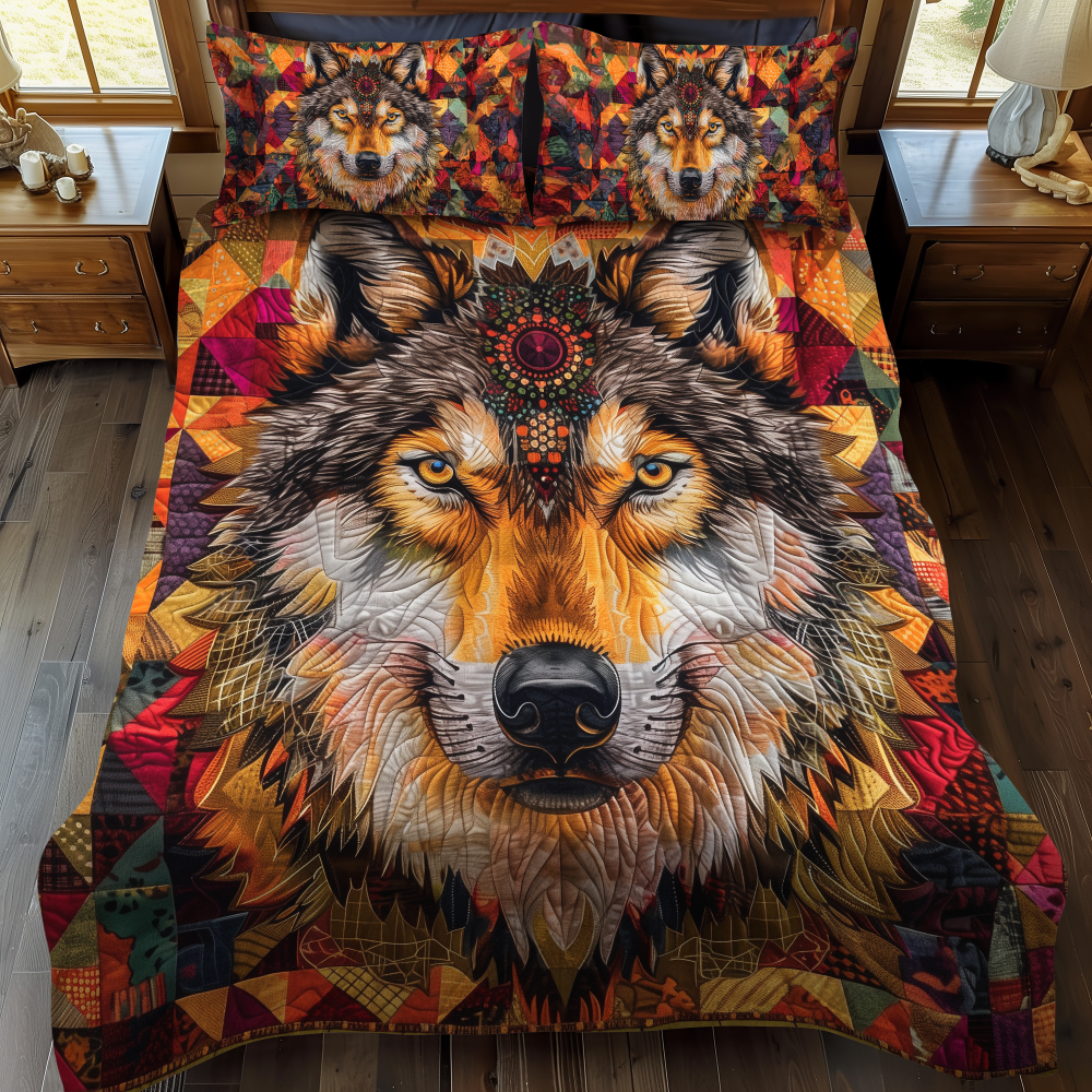 Wolf Native 3-Piece Quilted Bedding Set