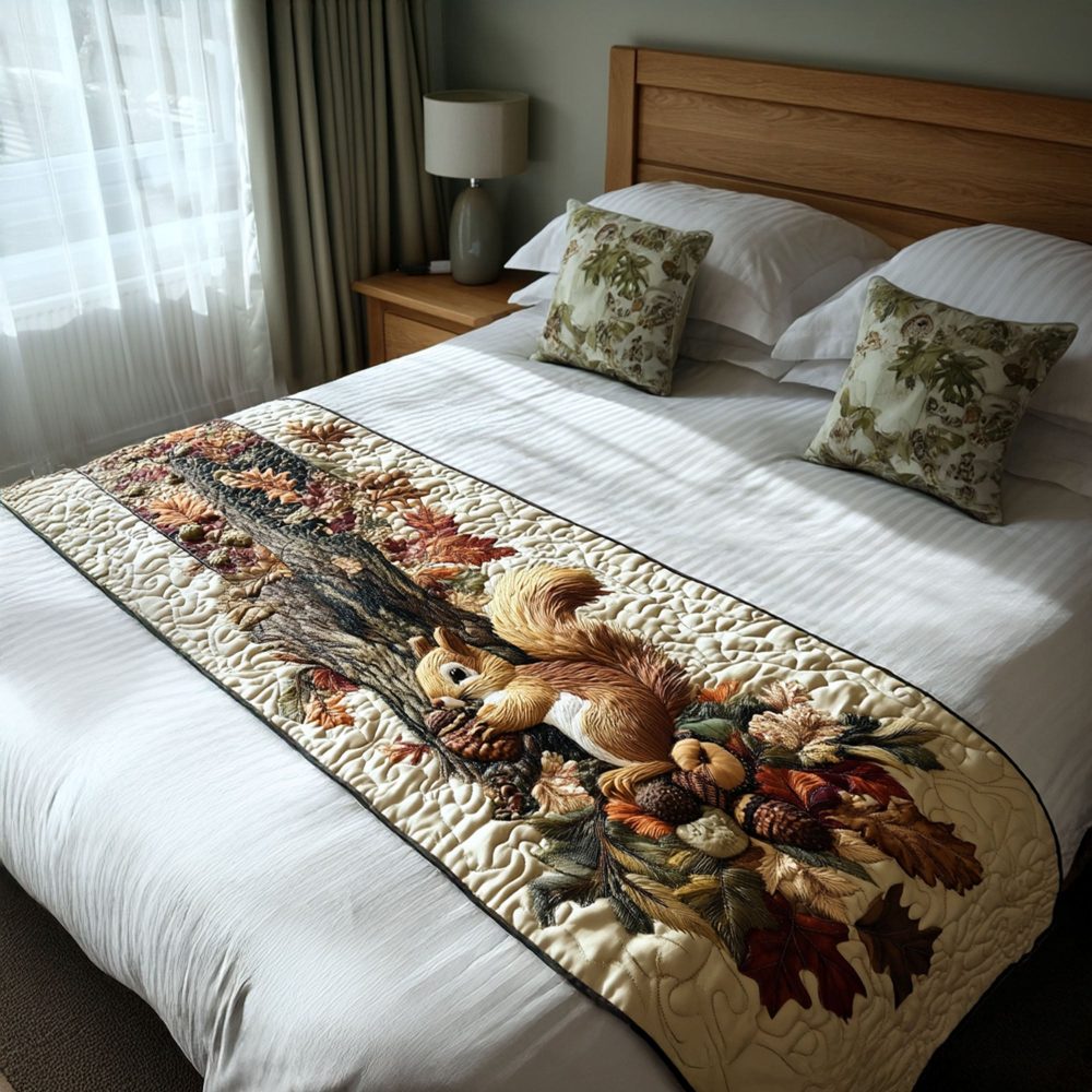 Woodland Wanderer Quilted Bed Scarf For Queen & King — Forest-Themed Bedding Accent, Nature-Inspired Quilt, Soft & Durable