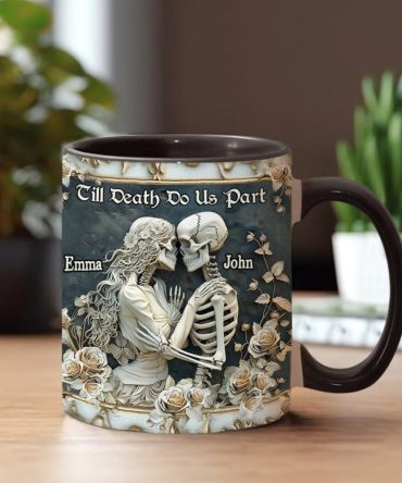 - High quality ceramic mug with two-tone rim, interior, & handle