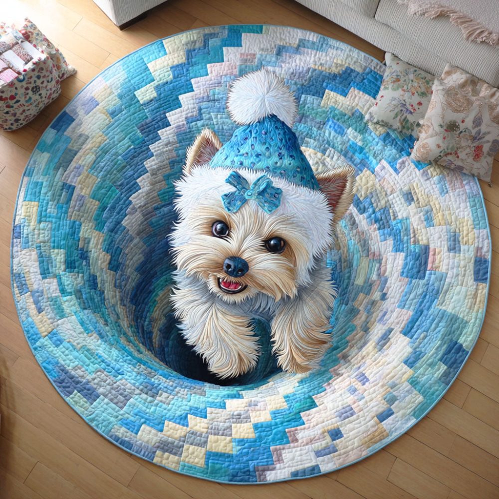 Yorkie Sleigh Quilted Round Mat