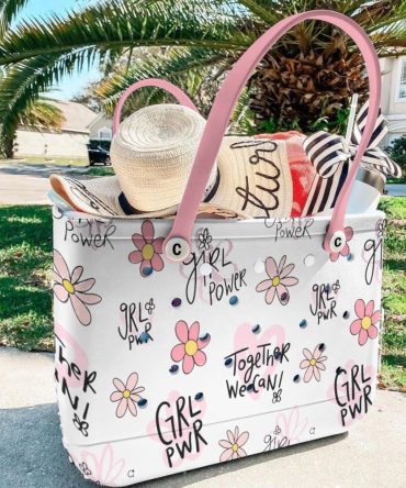 Bucket Tote Bag, Limited Edition Bogg Bag, Beach Bag Grl Pwr In Pink