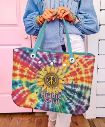 Bucket Tote Bag, Limited Edition Bogg Bag, Beach Bag Hippie Heart