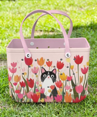 Bucket Tote Bag, Limited Edition Bogg Bag, Beach Bag Kitty In Bloom