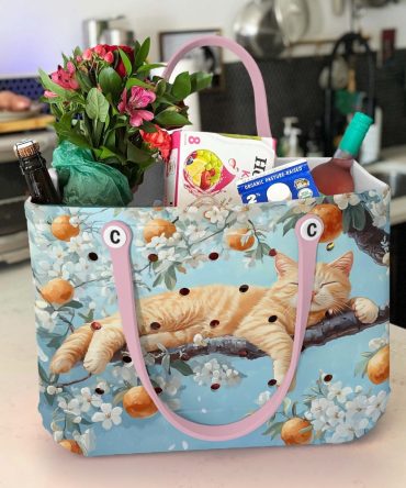 Bucket Tote Bag, Limited Edition Bogg Bag, Beach Bag Lazy Orange Cat