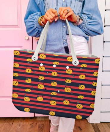 Bucket Tote Bag, Limited Edition Bogg Bag, Beach Bag Kitty Stripes
