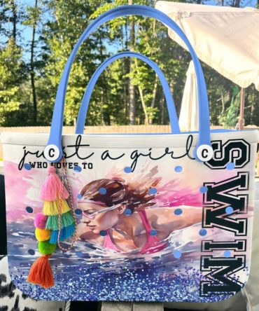 Bucket Tote Bag, Limited Edition Bogg Bag, Beach Bag Love Swimming