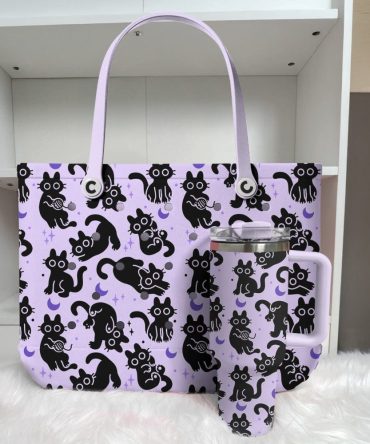 Bucket Tote Bag, Limited Edition Bogg Bag, Beach Bag Midnight Magic Cat
