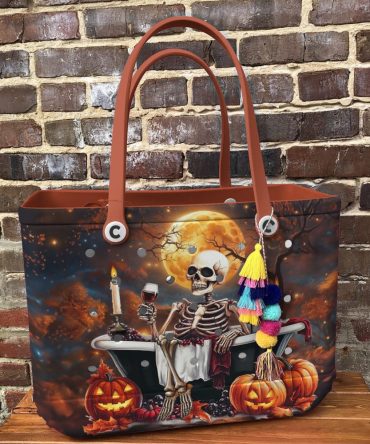 Bucket Tote Bag, Limited Edition Bogg Bag, Beach Bag Moonlit Skeleton