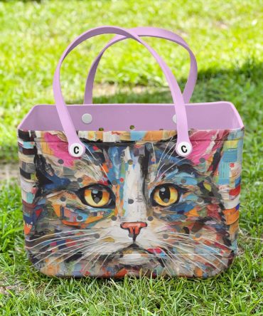 Bucket Tote Bag, Limited Edition Bogg Bag, Beach Bag Paper Purrfection