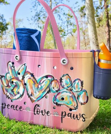 Bucket Tote Bag, Limited Edition Bogg Bag, Beach Bag Peace Love Paws