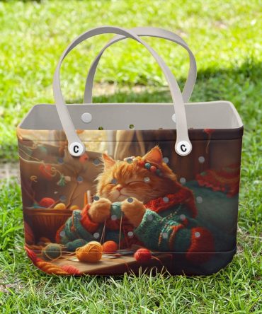 Bucket Tote Bag, Limited Edition Bogg Bag, Beach Bag Purrfectly Knitted