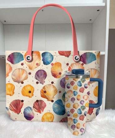 Bucket Tote Bag, Limited Edition Bogg Bag, Beach Bag Seashells Seamless