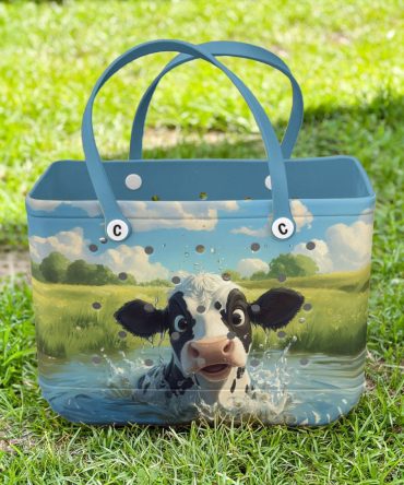 Bucket Tote Bag, Limited Edition Bogg Bag, Beach Bag Splashing Cow