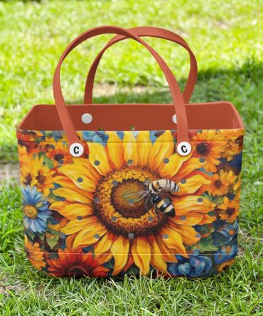 Bucket Tote Bag, Limited Edition Bogg Bag, Beach Bag Sunflower Bee Delight