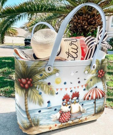 Bucket Tote Bag, Limited Edition Bogg Bag, Beach Bag Tropical Chicks