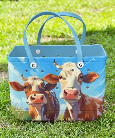Bucket Tote Bag, Limited Edition Bogg Bag, Beach Bag Two Happy Cows