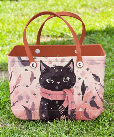 Bucket Tote Bag, Limited Edition Bogg Bag, Beach Bag Winter Charm Kitty