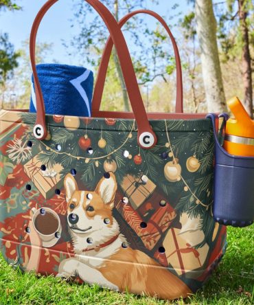 Bucket Tote Bag, Limited Edition Bogg Bag, Beach Bag Yule Corgi Bliss