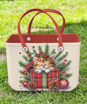 Bucket Tote Bag, Limited Edition Bogg Bag, Beach Bag Yuletide Kitty