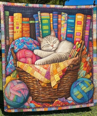 Cat Among Books Quilted Blanket